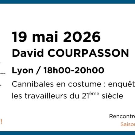 Événements et conférences Mardi 19 mai 2026 à Enseis Management (Lyon 9) Cannibales en costume : enquête sur les travailleurs du 21ème siècle - David COURPASSON Conférence impromptue - Cycle 2025/2026 En savoir plus